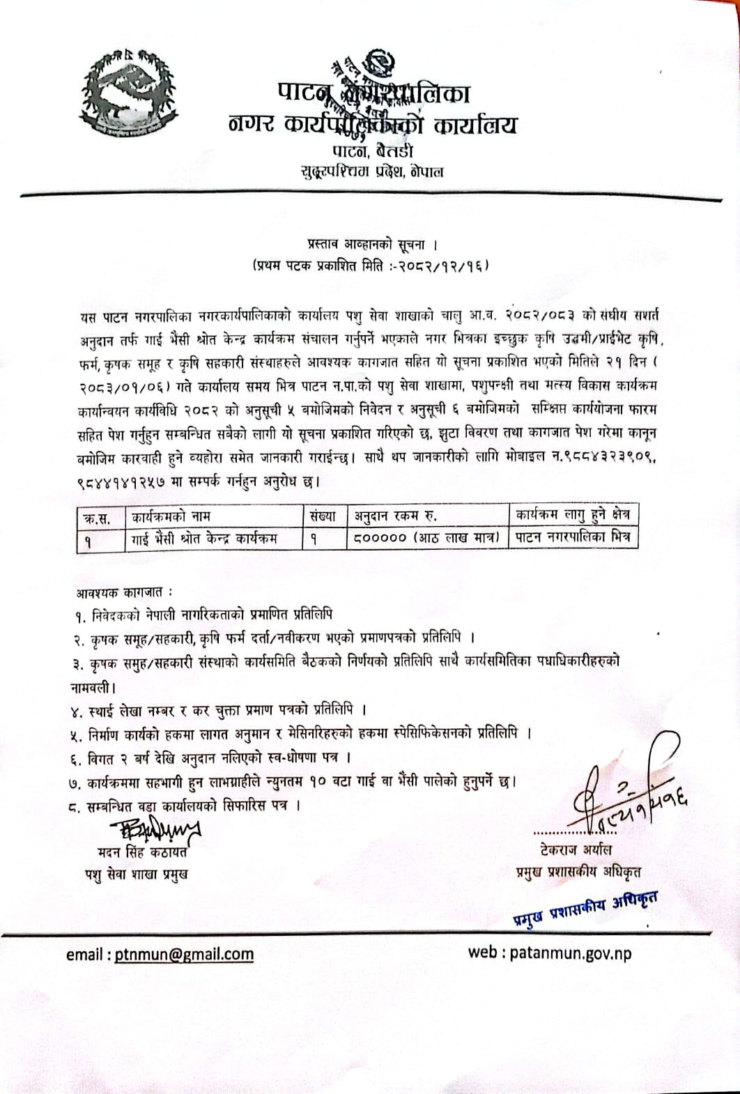 प्रस्ताव आव्हानको सूचना ।