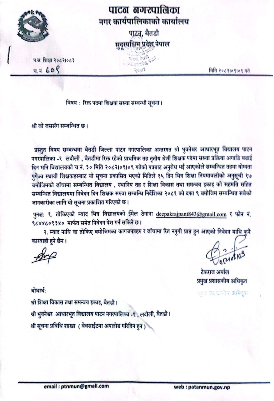 रिक्त पदमा शिक्षक सरुवा सम्बन्धी सूचना ।