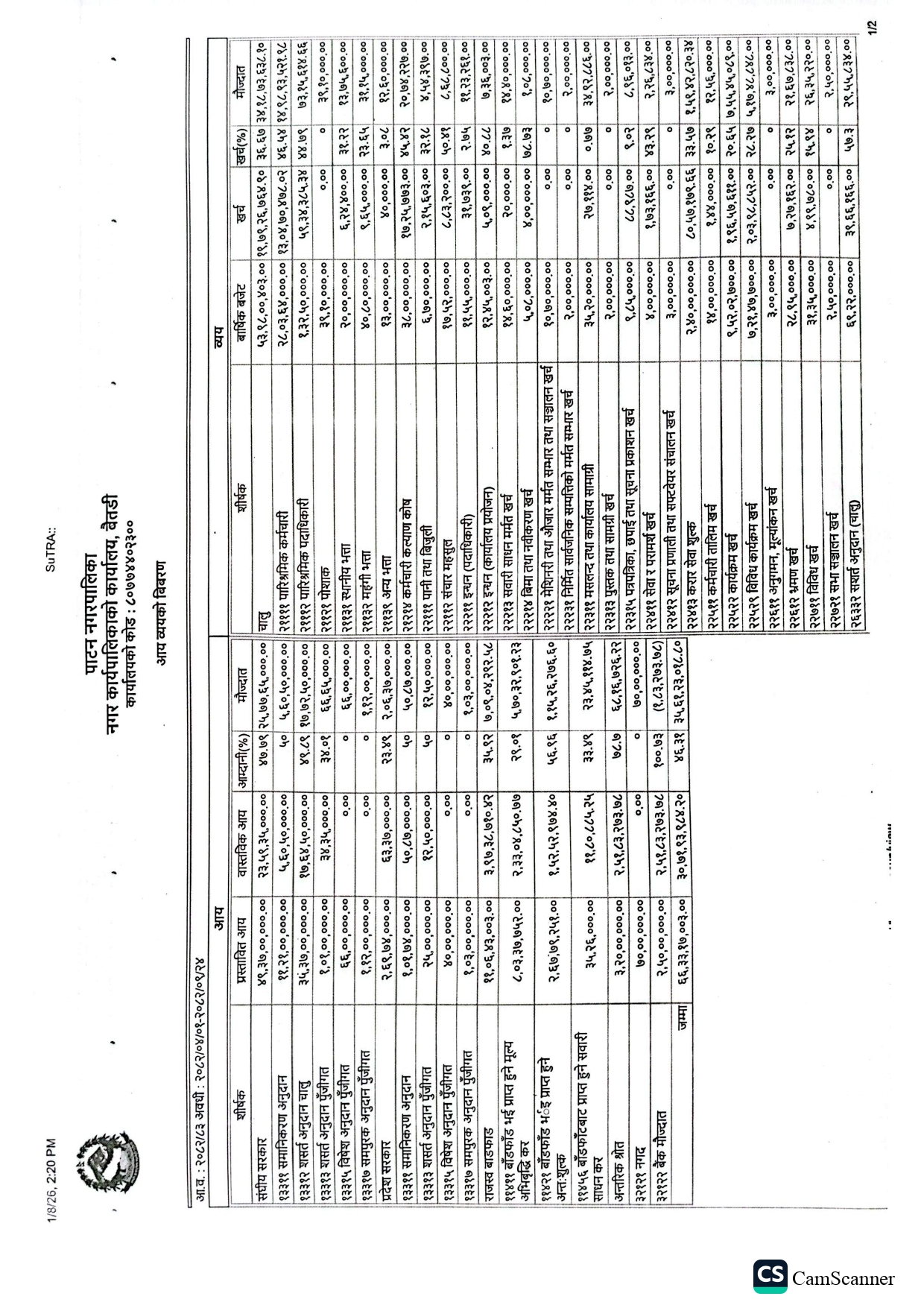आ.व. २०८२/०८३ को आय व्ययको विवरण । (पौष २४ सम्मको)