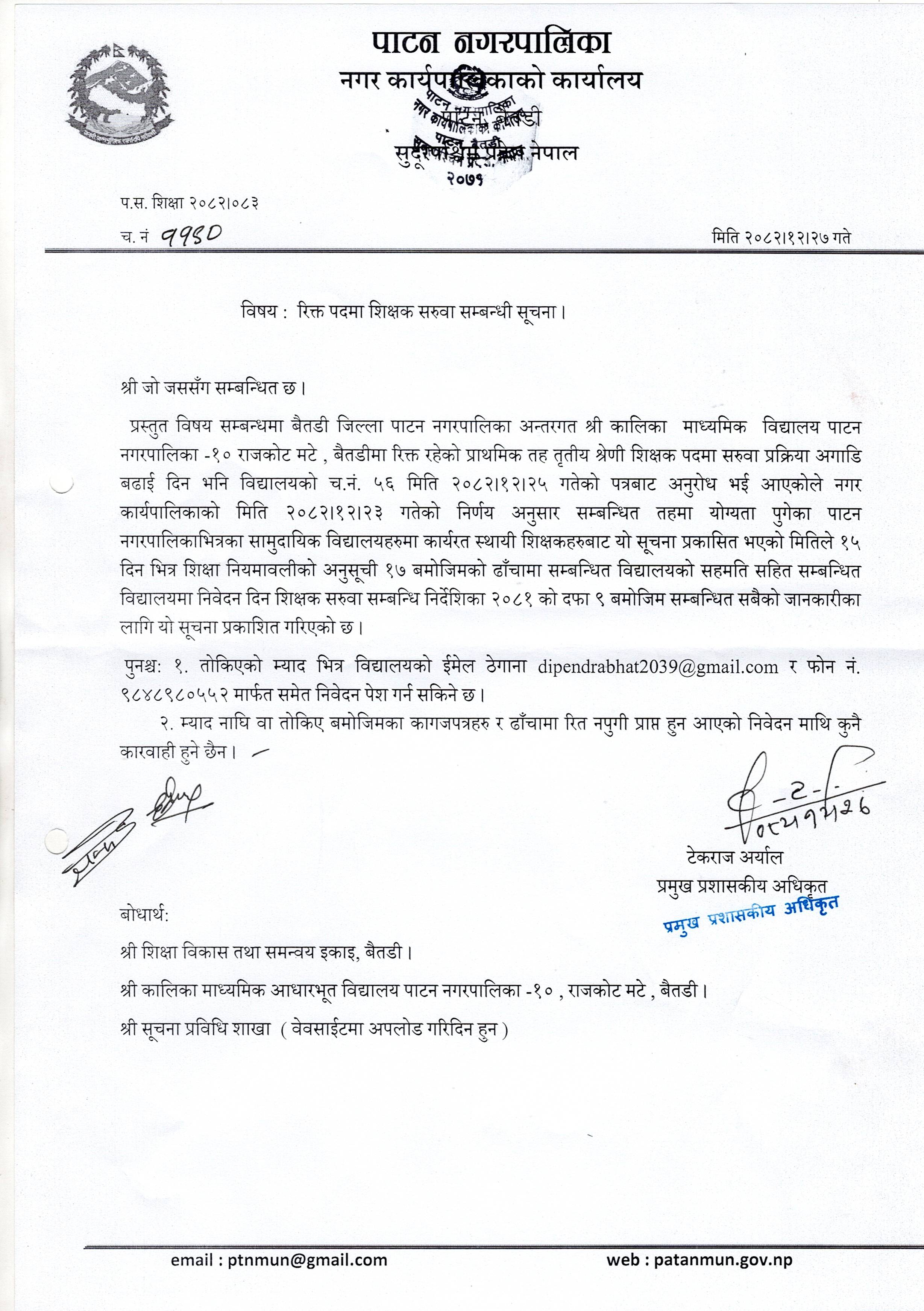 रिक्त पदमा शिक्षक सरुवा सम्बन्धी सूचना ।