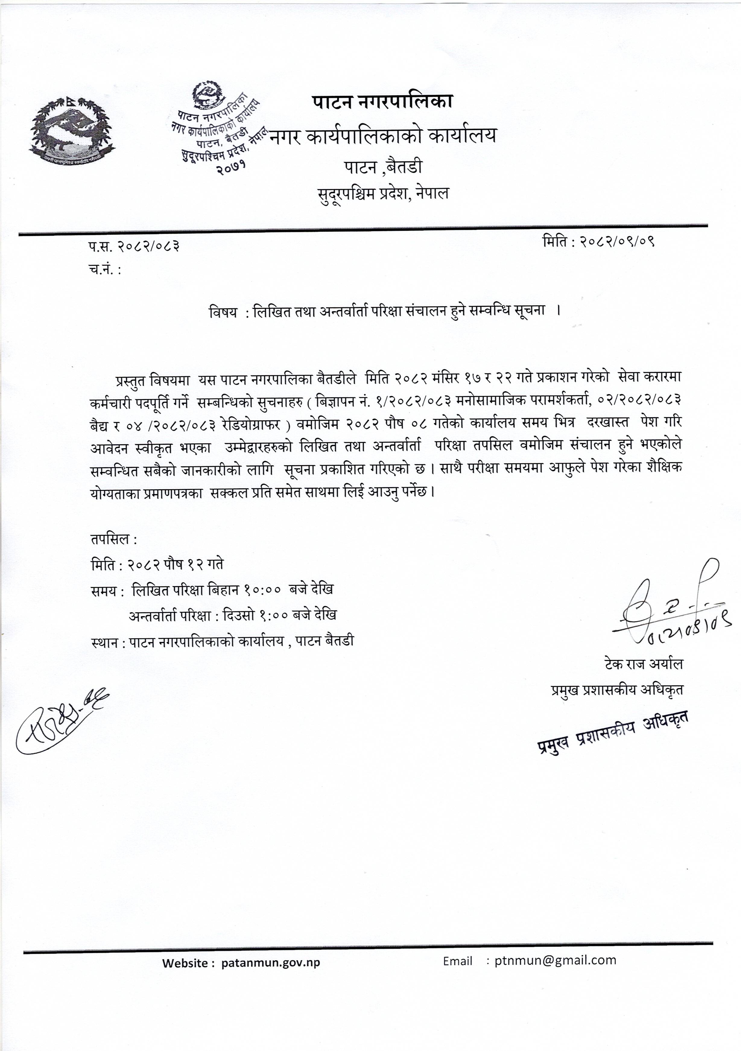लिखित तथा अन्तर्वार्ता परिक्षा संचालन हुने सम्बन्धी सूचना ।