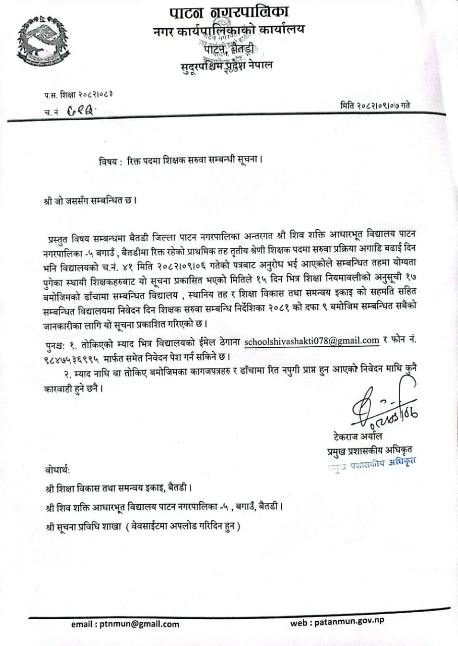 रिक्त पदमा शिक्षक सरुवा सम्बन्धी सूचना ।