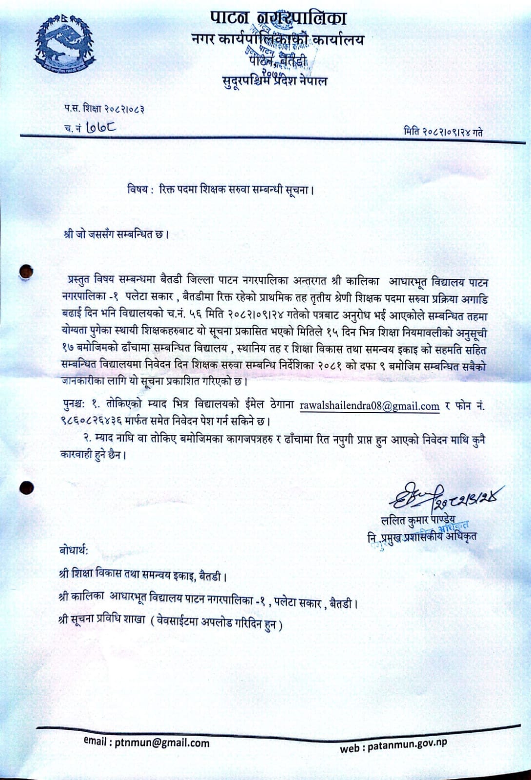 रिक्त पदमा शिक्षक सरुवा सम्बन्धी सूचना ।