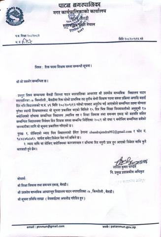 रिक्त पदमा शिक्षक सरुवा सम्बन्धी सूचना ।