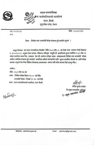 लिखित तथा अन्तर्वार्ता परिक्षा संचालन हुने सम्बन्धी सूचना ।