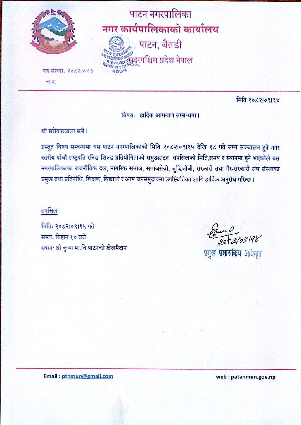 हार्दिक आमन्त्रण सम्बन्धमा ।